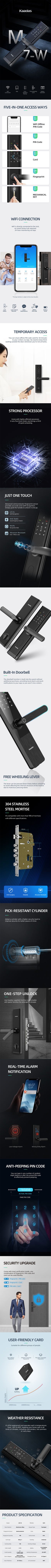✅ Conectividad WIFI 📶: A través de la app Kaadas Lock o Tuya, puedes generar códigos de acceso temporales o de un solo uso para huéspedes y llevar un registro de los accesos.